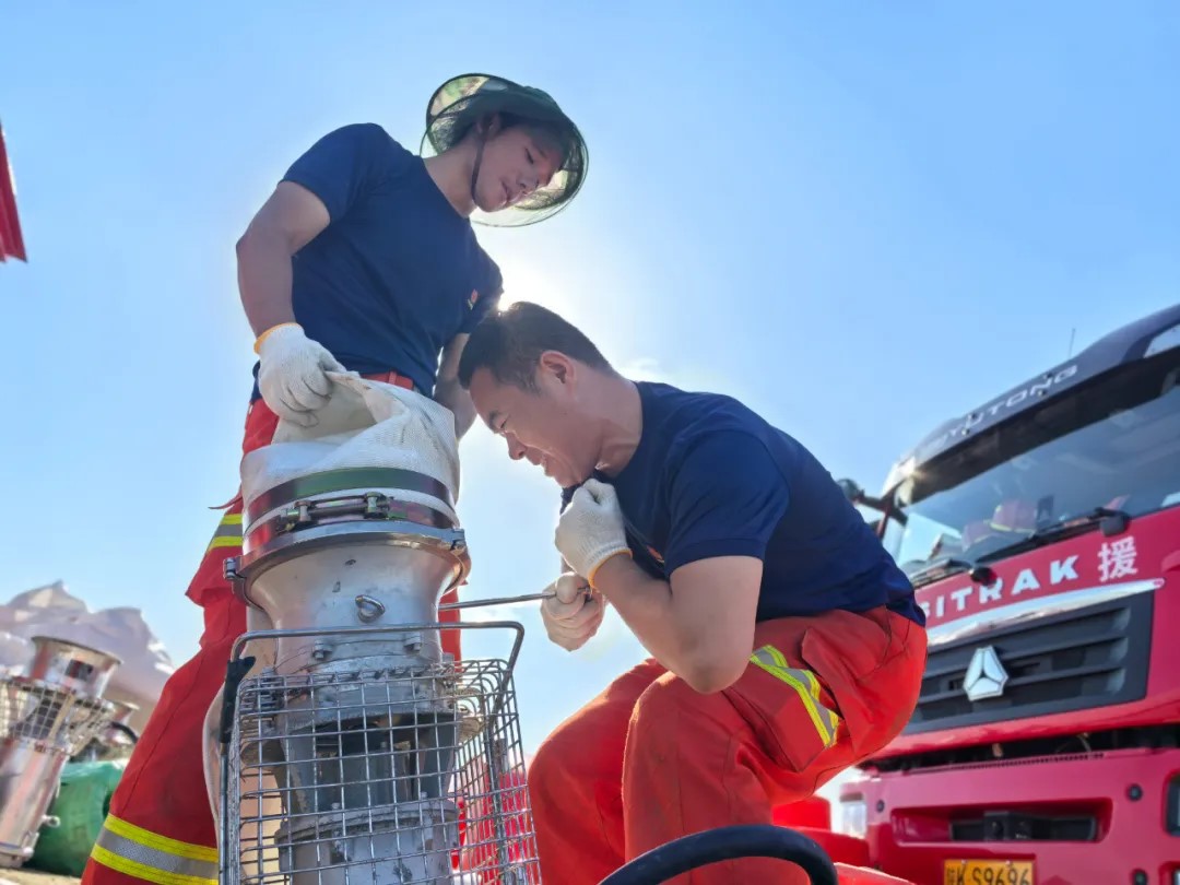 從河南到湖南,再到內蒙古,作為第三次跨省執行任務的“老兵”,中煤榆林隊不僅具備豐富的搶險救援經驗,更深知高效救援離不開科學規范的流程。他們堅持標準化作業,水帶鋪設橫平豎直,接口銜接嚴絲合縫,設備布局科學規范,這些近乎苛刻的細節,都是與洪水搶時間、為生命護航的過程中總結出的最快最穩的方式,早已從日常備戰訓練中固化為每一次出險的工作標準,使他們成為多支救援隊伍信賴的“標桿樣板”,甚至吸引同行現場學習。